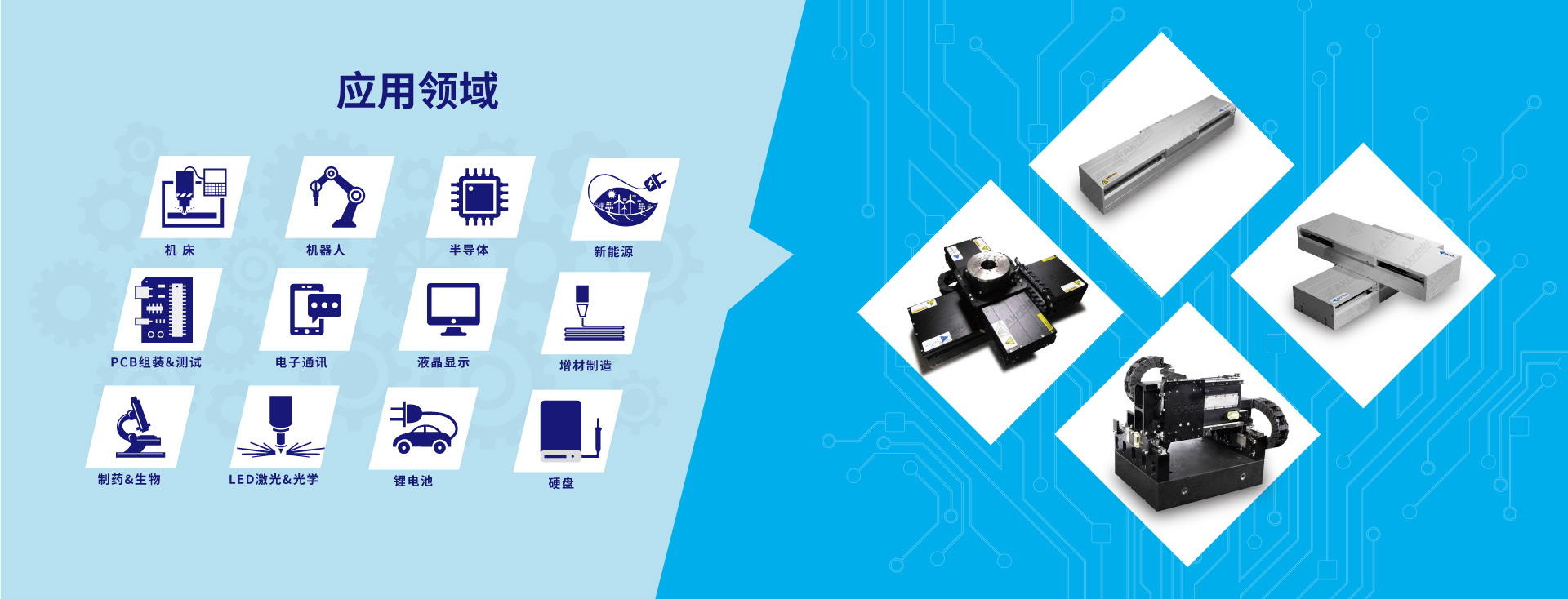 Akribis 致力于研发、设计和生产直驱电机(直线电机、力矩电机、音圈电机)和高精度运动平台,以及提供高精密系统解决方案。