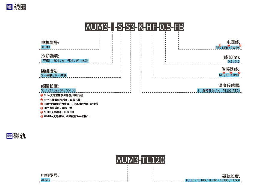 电机线圈 | 线圈长度(mm) | 持续推力(N) | 峰值推力(N) |