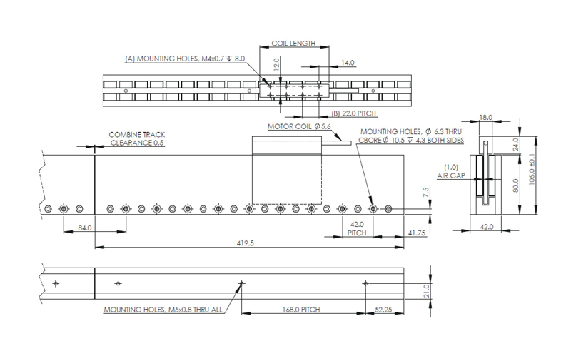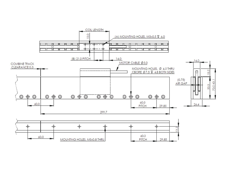 电机磁轨磁轨长度 (mm)