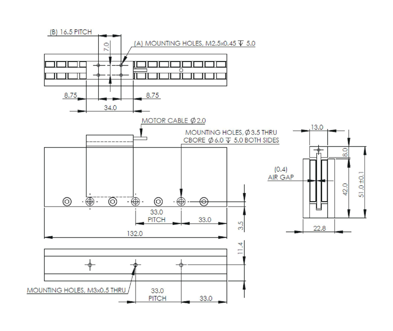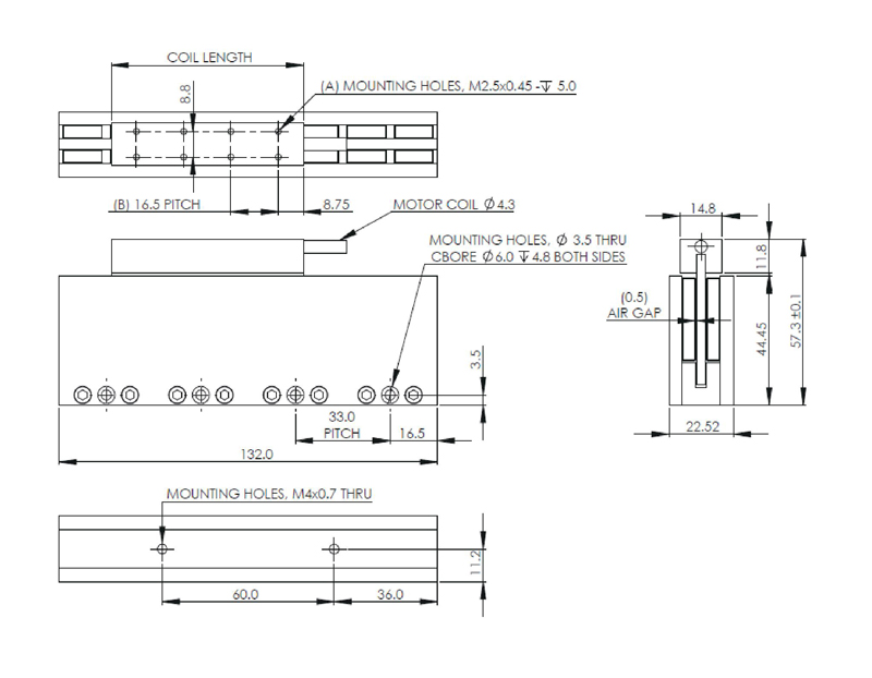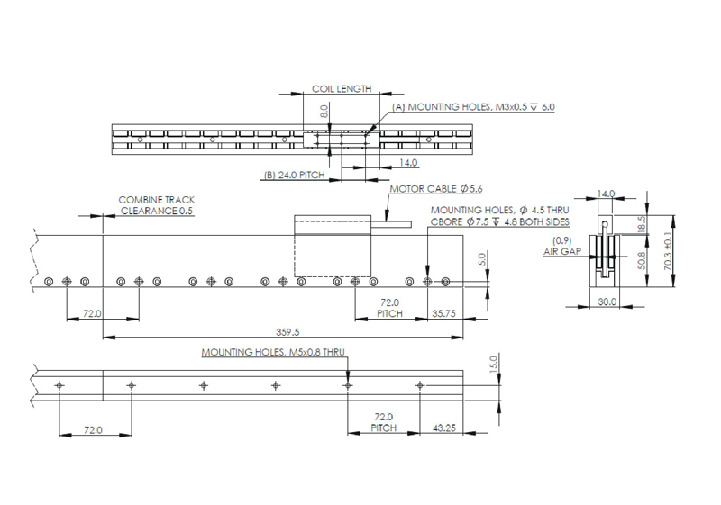 ALM系列为无铁芯直线电机,无齿槽力,宽度小,重量轻,响应快,适用于对推力要求不高,响应快的应用