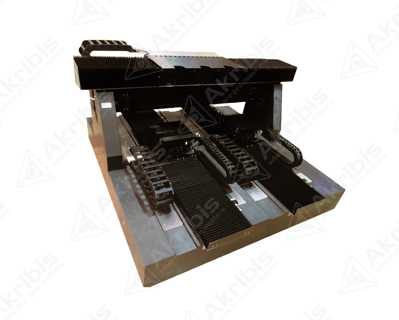 XY轴龙门双驱结构,底部两个直线电机同步控制,